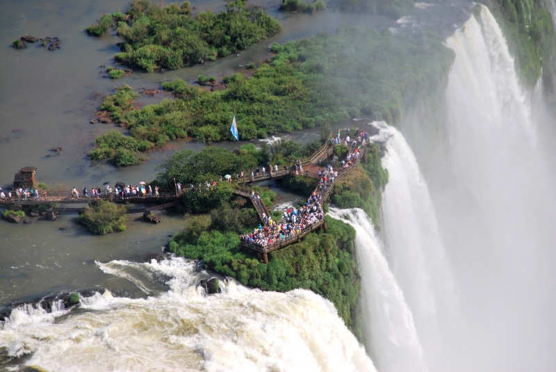 >イグアス大起因は、現在のイグアス河の河床地層に亀裂が生じ、80メートルの断層により滝が発生し、その現象は現在ガルガンタ.ド.ヂアボ(悪魔の喉笛)より23キロメートルの地点で起こりました。